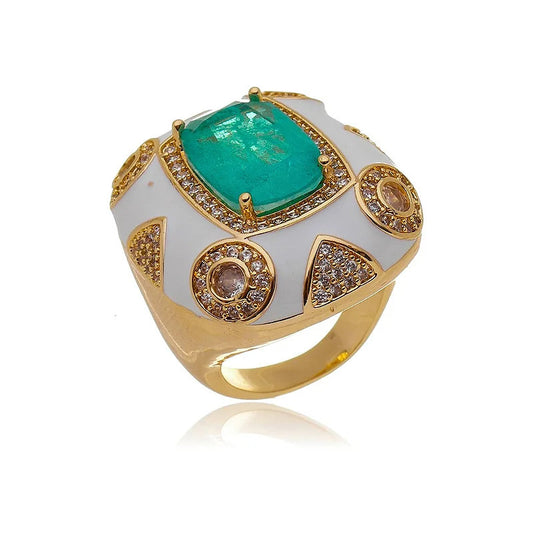 18K GOLD PLATED ENAMEL RING WITH ZIRCONIA